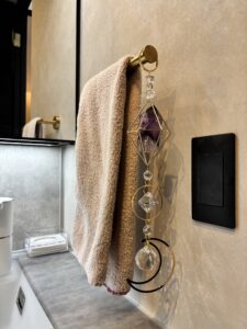 洗面に飾られたアメジストストーンもご主人セレクトとのこと。