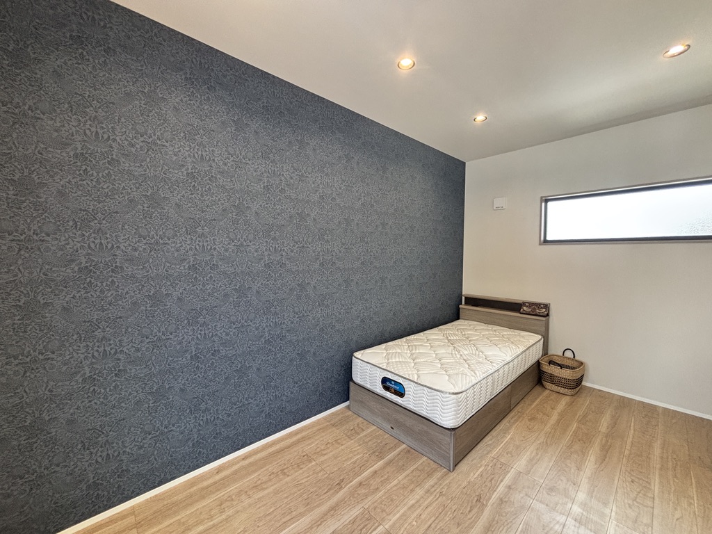 奥様がひと目で気に入られた、鳥のモチーフが美しいウィリアムモリスのクロスを選び奥様だけの特別な空間に。 深みのあるブルーが穏やかな時間を演出してくれます。