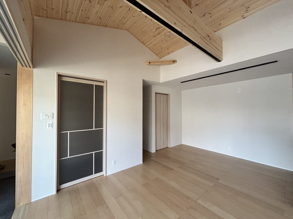 リクシルの建具『ラシッサ・コウノキ』を採用。和モダンの落ち着いた空気にやさしく溶け込む建具です。